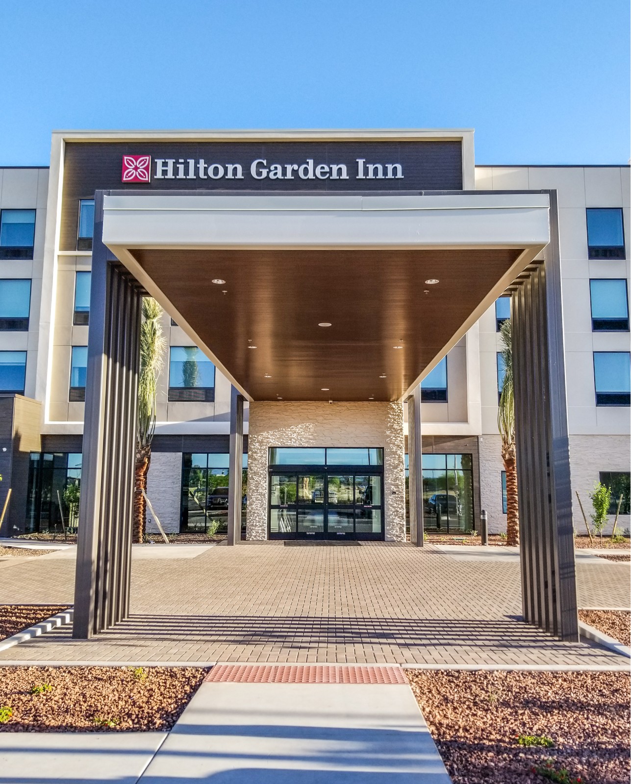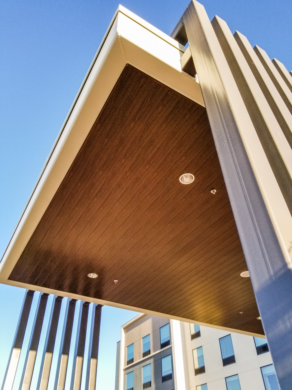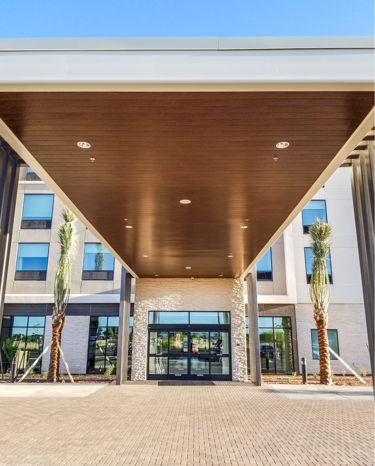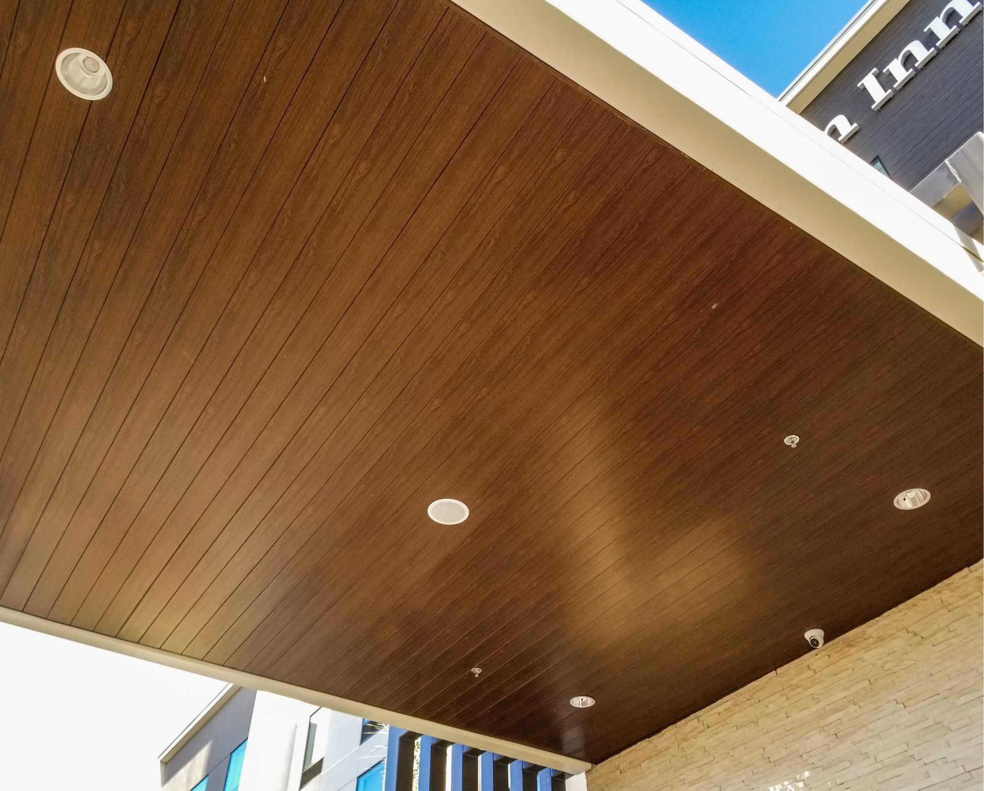 This Hilton Garden Inn used our Sagirev Ref 3 Chocolate Blackwood finish in the underside of the porte cochere and all other covered entrances to the hotel.