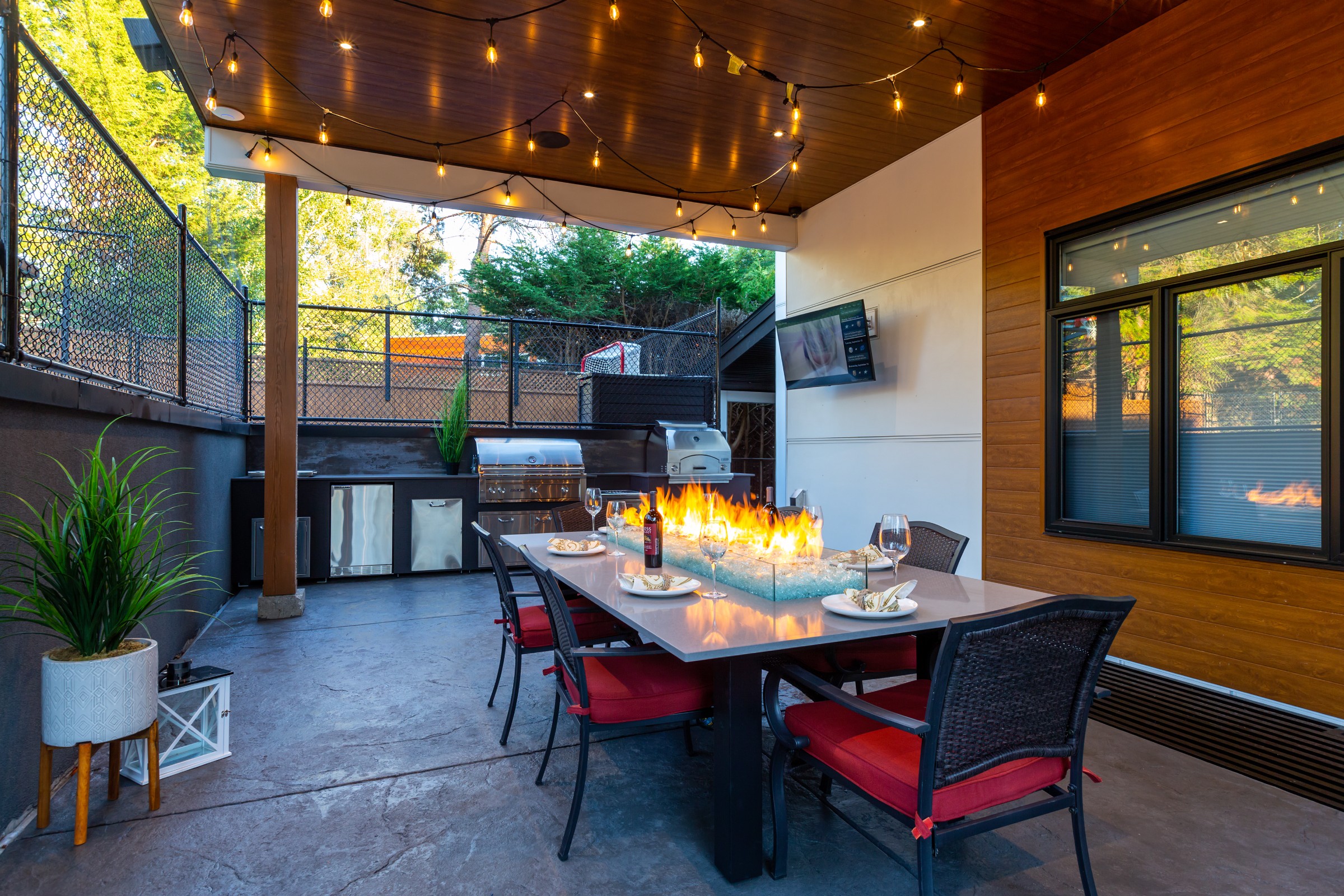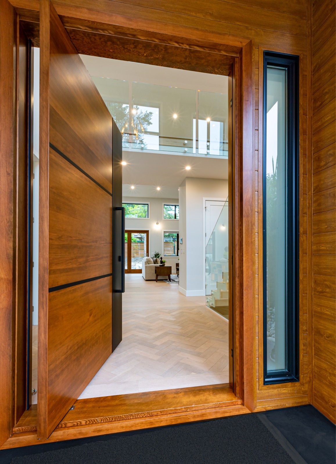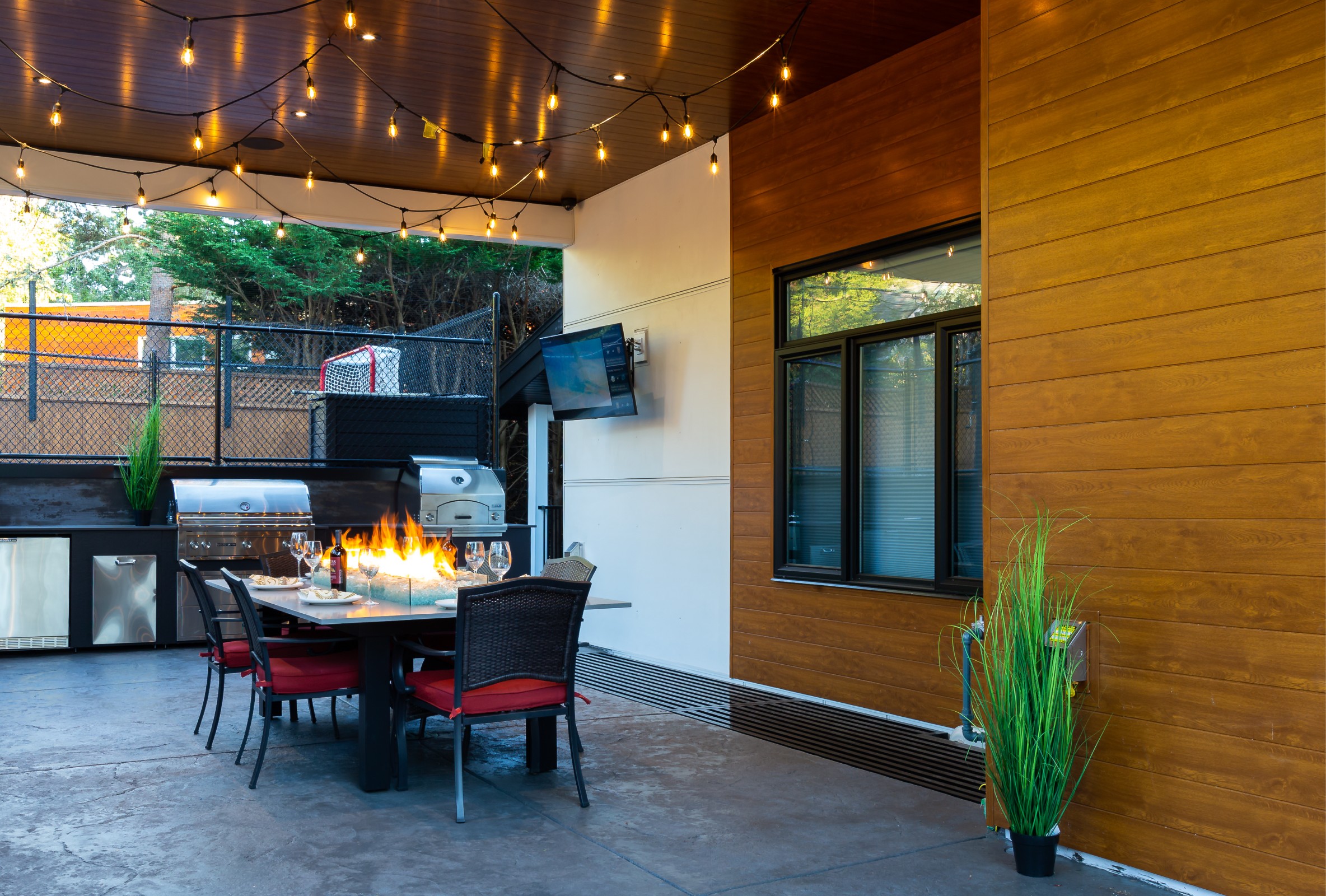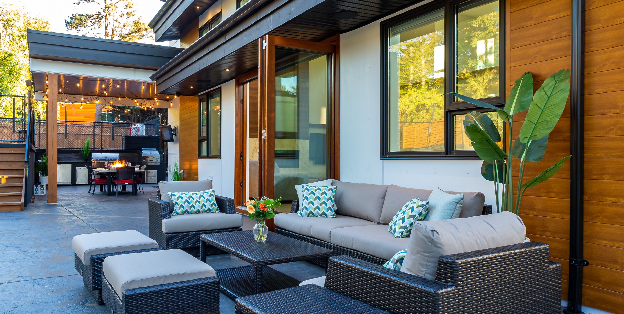 This beautiful custom home located on the west coast screams curb appeal! The use of large white siding panels mixed with our 6″ Sagiwall cladding in a horizontal application makes this home stand out from the road. In the back covered deck area the client utilized our Sagirev 6″ panels on the ceiling to give the outdoor eating space a modern touch.