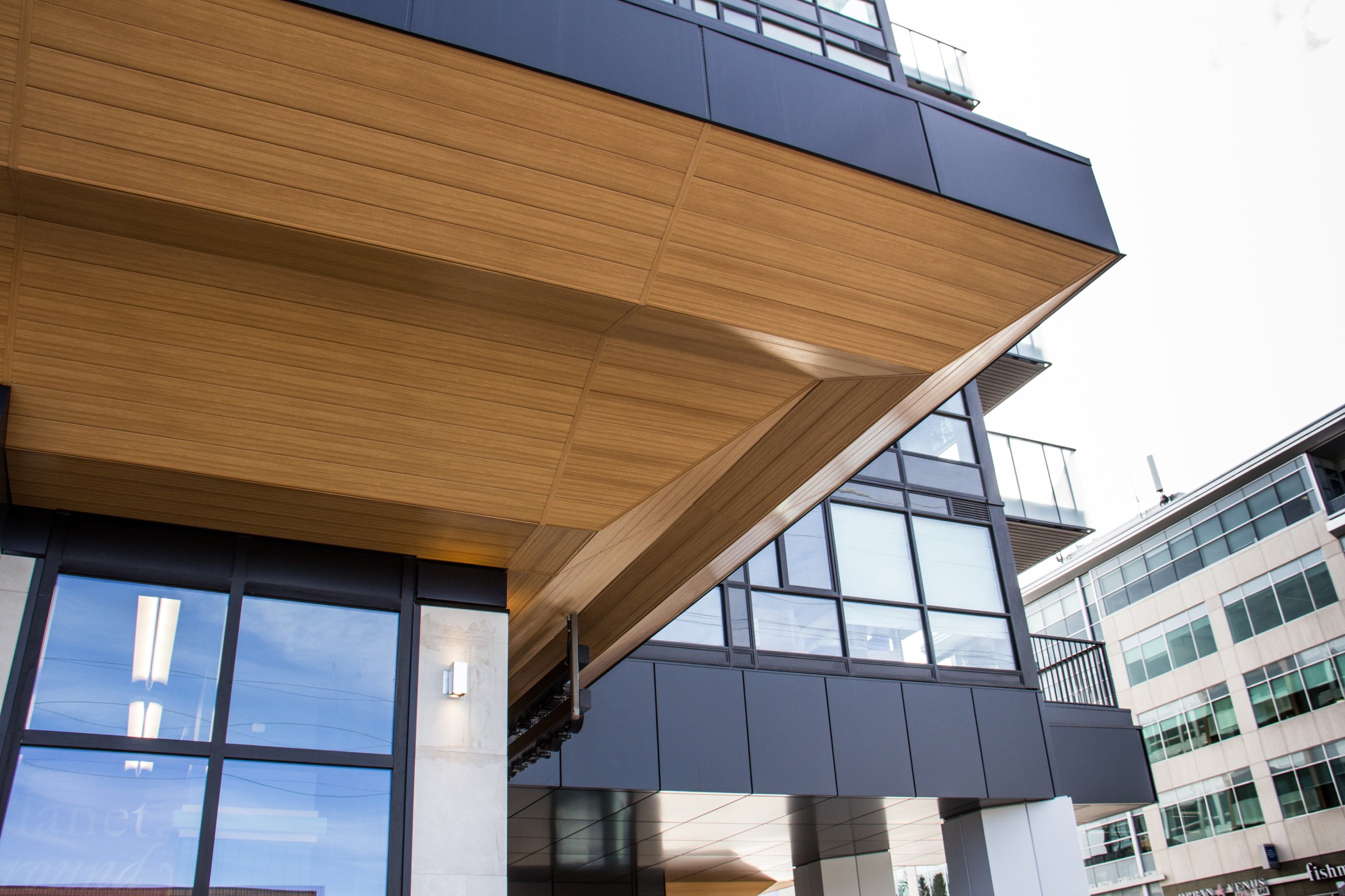 This beautiful project utilized our Sagiwall and Sagirev product lines for the cladding features and tiered soffit application. The finished design with our products truly gave this multi-use condo building curb appeal.