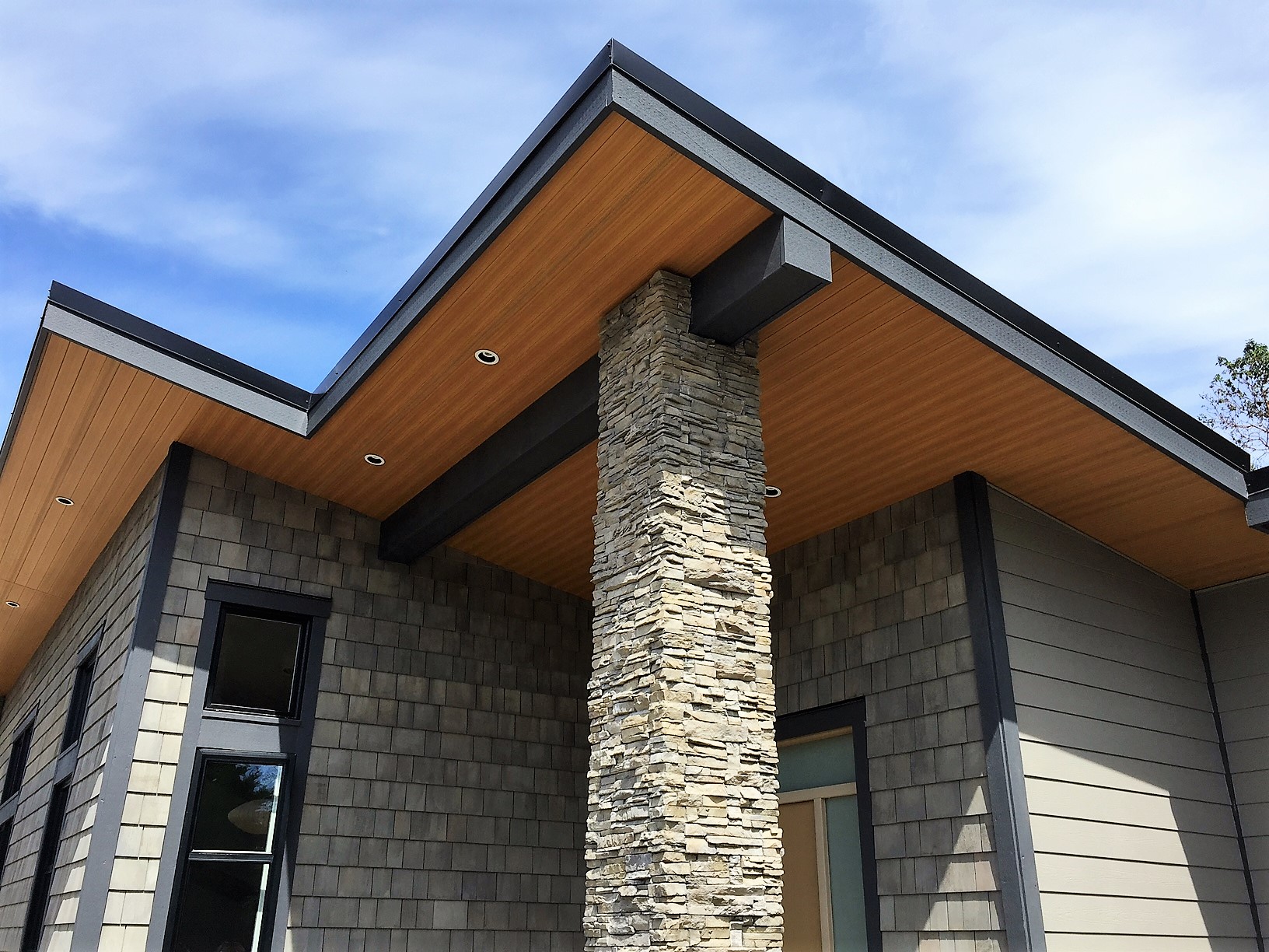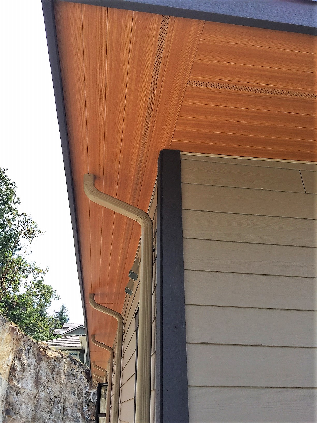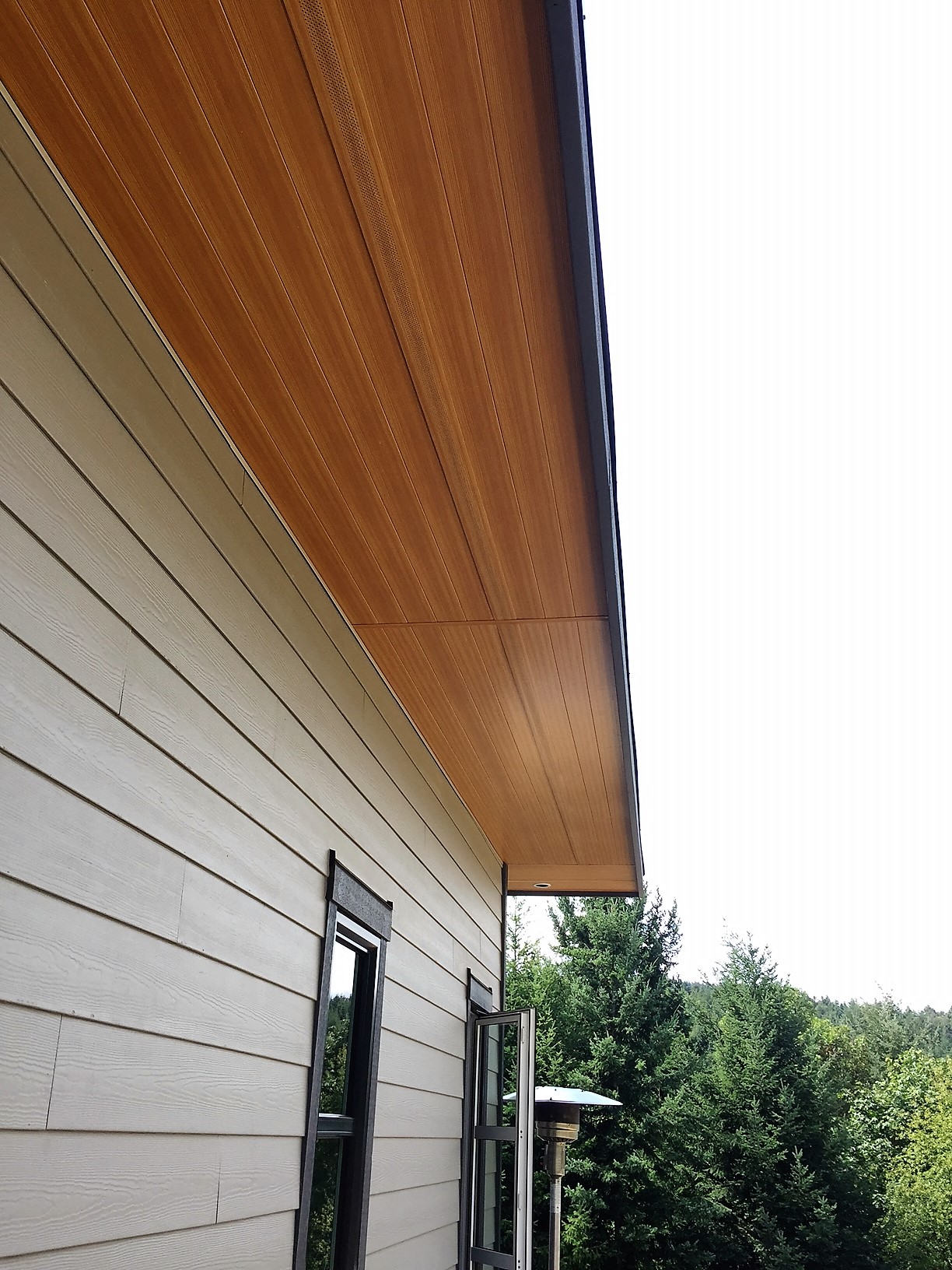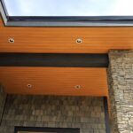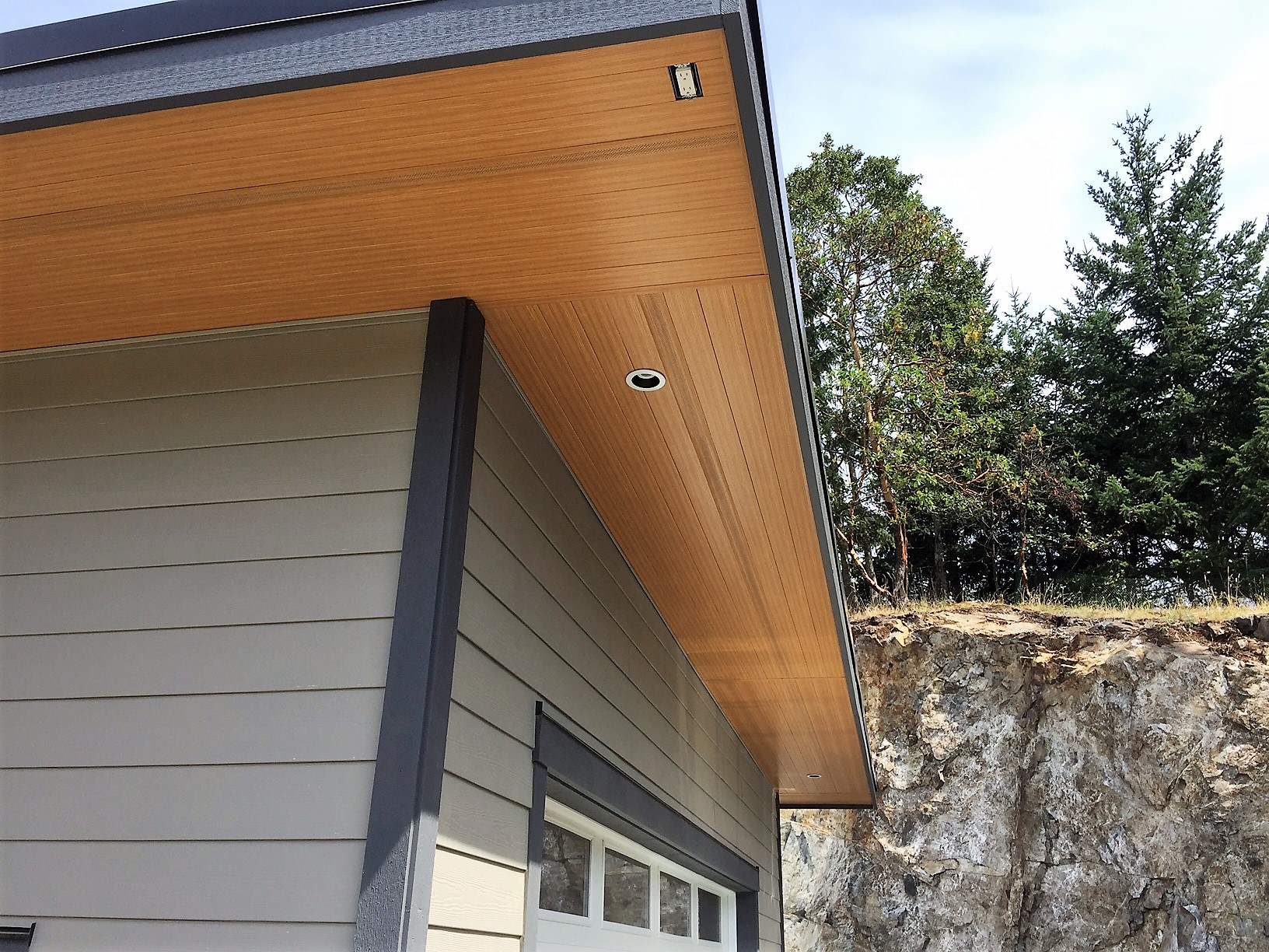 This beautiful Vancouver Island Cottage used our 4″ SAGIREV panels in the Ref# 9 Caramel Zebrawood finish. The panels were installed adjacent to the home while using our color matched vent strip for ventilation.
